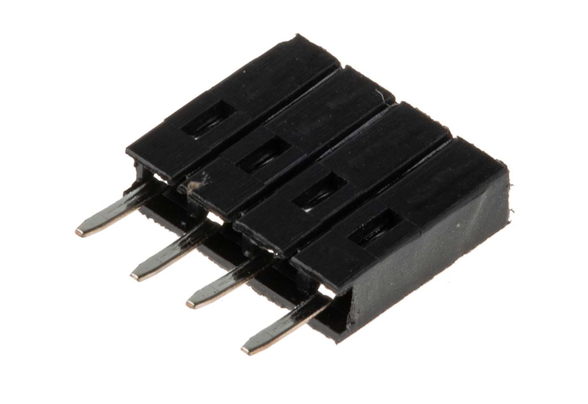 This is 2.54mm Pitch 4 Way 1 Row Straight PCB Socket Through Hole Solder Termination manufactured by RS Pro. The manufacturer part number is 251-8193. The product has a current rating of 1a. The product is available in through hole configuration. It has straight body orientation. It allows solder termination method. It comes in 1 of rows. Moreover, the product is 2.54mm. The product contains 4 contacts. It comes in socket strip configuration. The product is made from sturdy bronze materials.