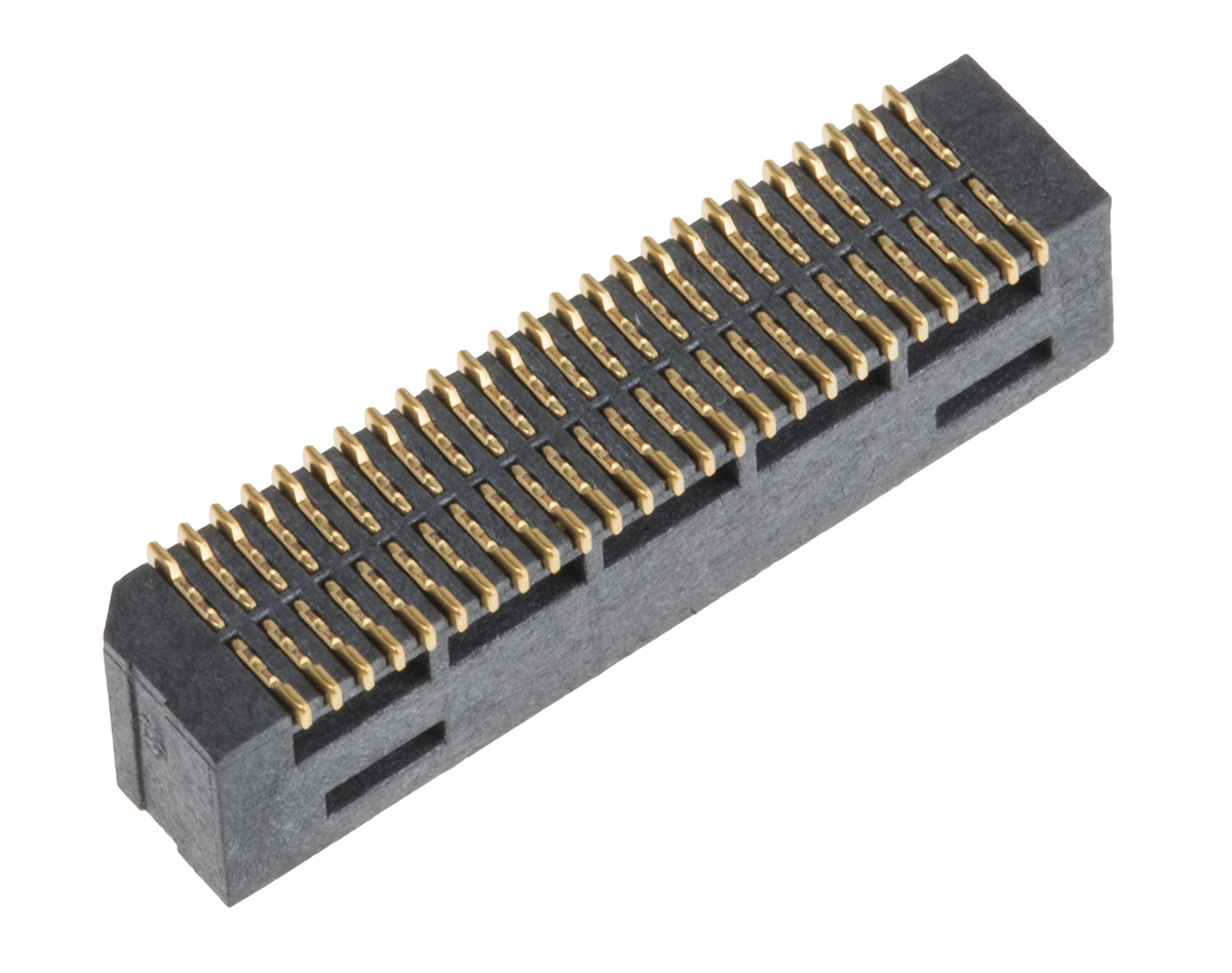 This is TEMS Series 0.8mm Pitch 50 Way 2 Row Vertical PCB Socket PCB Mount SMT Termination manufactured by Samtec. The manufacturer part number is TEMS-125-02-03.0-G-D-K-TR. The product has a current rating of 2.6a. The high-quality gold is used as contact plating material. The product is available in pcb mount configuration. Moreover, the product has a nominal 235 v , 330 v voltage rating. The product tems, is a highly preferred choice for users. It has straight body orientation. It allows smt termination method. It has a standard 6mm stacking height . It comes in 2 of rows. Moreover, the product is 0.8mm. The product contains 50 contacts. It comes in board to board configuration. The product is made from sturdy bronze materials.