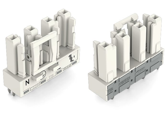 This is 770 Series Straight PCB Mount PCB Socket 4-Contact 1-Row 10mm Pitch Cage Clamp Termination manufactured by WAGO. The manufacturer part number is 770-824. The product is available in pcb mount configuration. The product 770, is a highly preferred choice for users. It has straight body orientation. It allows cage clamp termination method. It comes in 1 of rows. Moreover, the product is 10mm. The product contains 4 contacts. It comes in female socket configuration.