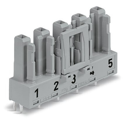 This is 770 Series Straight PCB Mount PCB Socket 5-Contact 1-Row 10mm Pitch Cage Clamp Termination manufactured by WAGO. The manufacturer part number is 770-845. The product is available in pcb mount configuration. The product 770, is a highly preferred choice for users. It has straight body orientation. It allows cage clamp termination method. It comes in 1 of rows. Moreover, the product is 10mm. The product contains 5 contacts. It comes in female socket configuration.