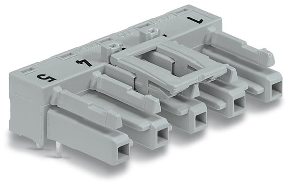 This is 770 Series Angled PCB Mount PCB Socket 5-Contact 1-Row 10mm Pitch Cage Clamp Termination manufactured by WAGO. The manufacturer part number is 770-845/011-000. The product is available in pcb mount configuration. The product 770, is a highly preferred choice for users. It has angled body orientation. It allows cage clamp termination method. It comes in 1 of rows. Moreover, the product is 10mm. The product contains 5 contacts. It comes in female socket configuration.