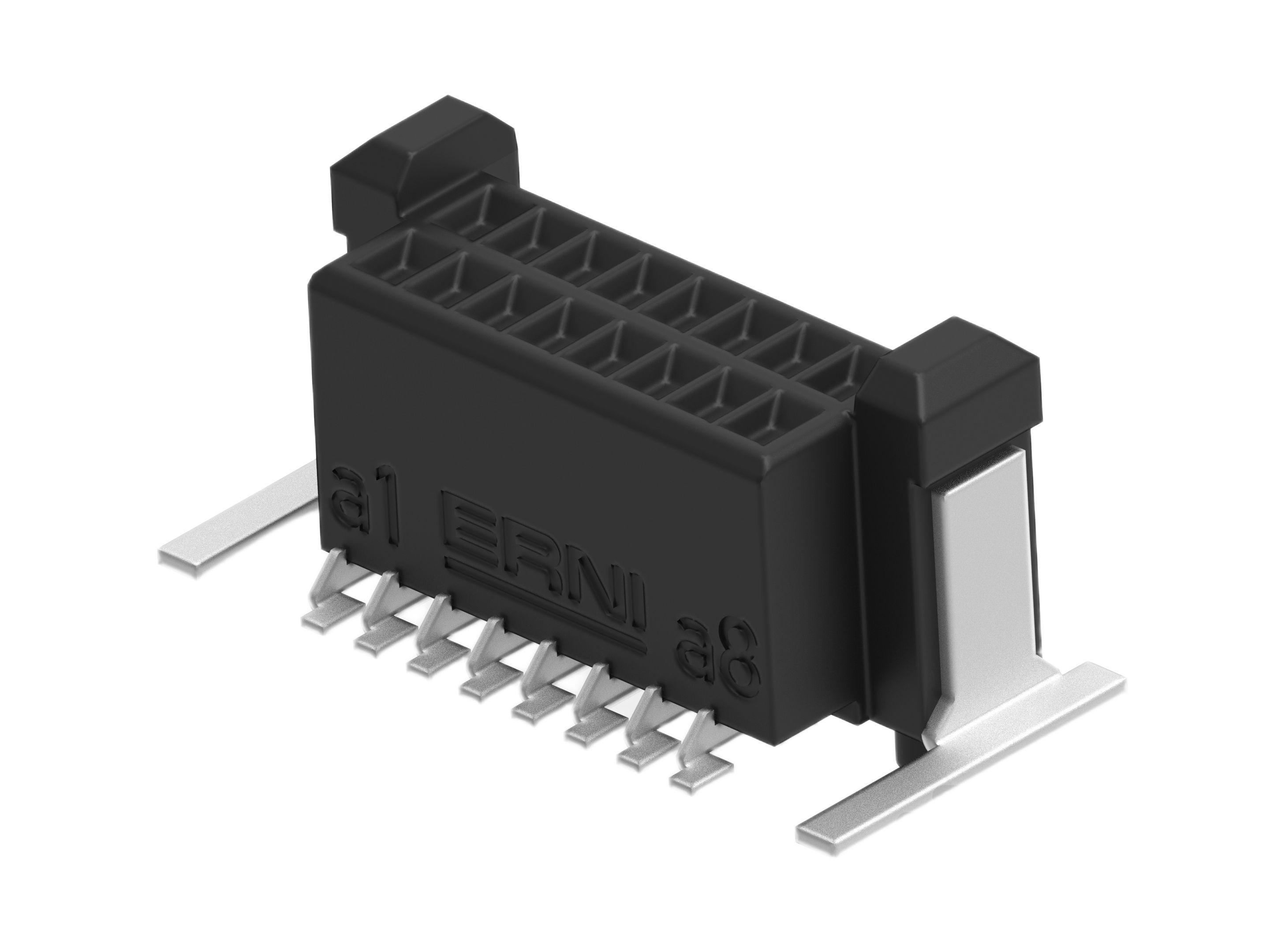 This is MicroCon Series Vertical Surface Mount PCB Socket 16-Contact 2-Row 0.8mm Pitch Surface Mount Termination manufactured by ERNI. The manufacturer part number is 294001-E. The product has a current rating of 2.33a. It has a standard 4mm stacking height . The product is available in surface mount configuration. Moreover, the product has a nominal 500 v ac voltage rating. The product erni microcon, is a highly preferred choice for users. It has vertical body orientation. It allows surface mount termination method. It allows board to board connector system. It comes in 2 of rows. The high-quality au is used as contact plating material. Moreover, the product is 0.8mm. The product contains 16 contacts. It comes in pcb mount receptacle configuration. The product is made from sturdy copper alloy materials.