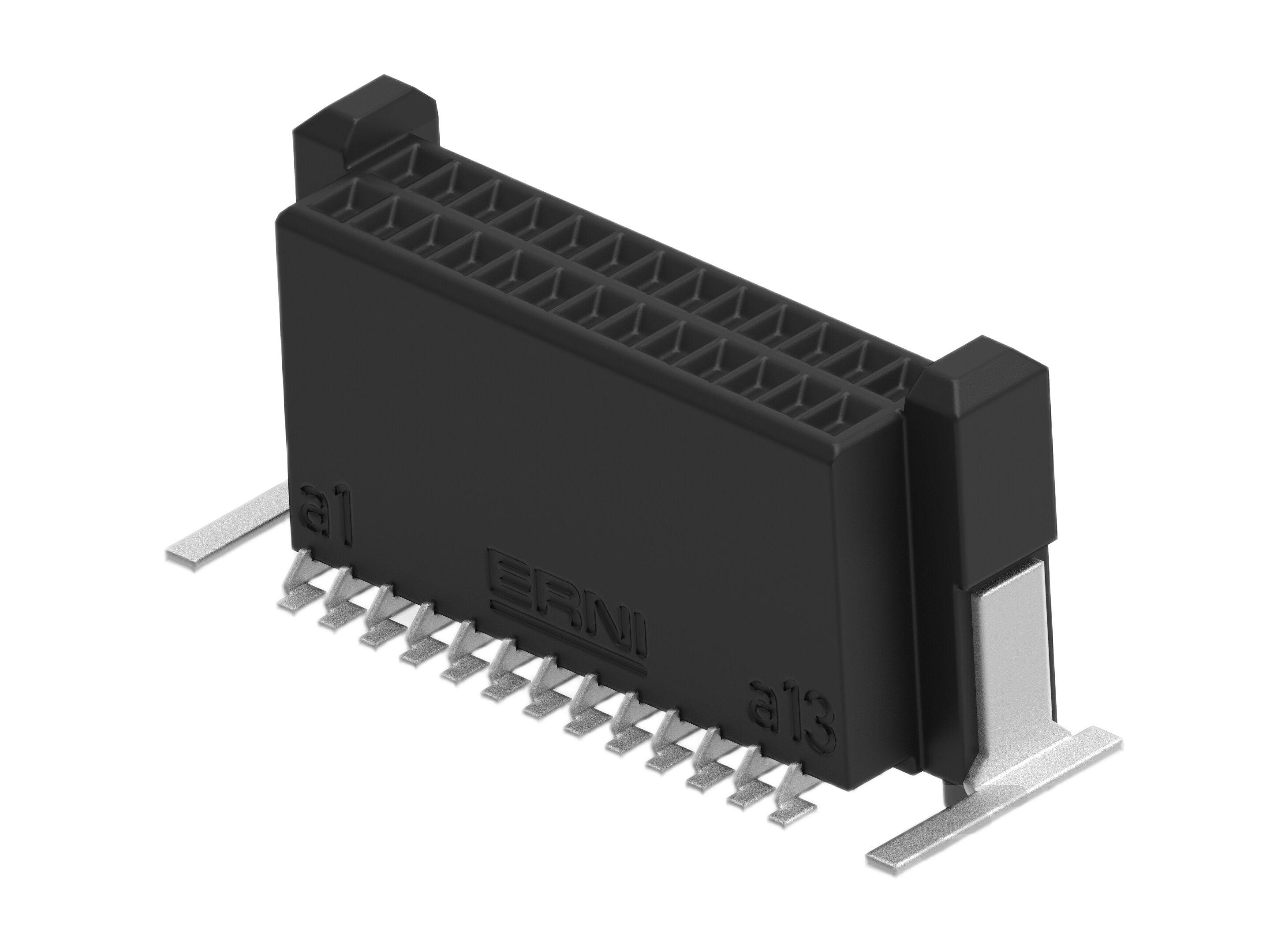 This is MicroCon Series Vertical Surface Mount PCB Socket 26-Contact 2-Row 0.8mm Pitch Surface Mount Termination manufactured by ERNI. The manufacturer part number is 294015-E. The product has a current rating of 2.82a. It has a standard 6mm stacking height . The product is available in surface mount configuration. Moreover, the product has a nominal 500 v ac voltage rating. The product erni microcon, is a highly preferred choice for users. It has vertical body orientation. It allows surface mount termination method. It allows board to board connector system. It comes in 2 of rows. The high-quality au is used as contact plating material. Moreover, the product is 0.8mm. The product contains 26 contacts. It comes in pcb mount receptacle configuration. The product is made from sturdy copper alloy materials.