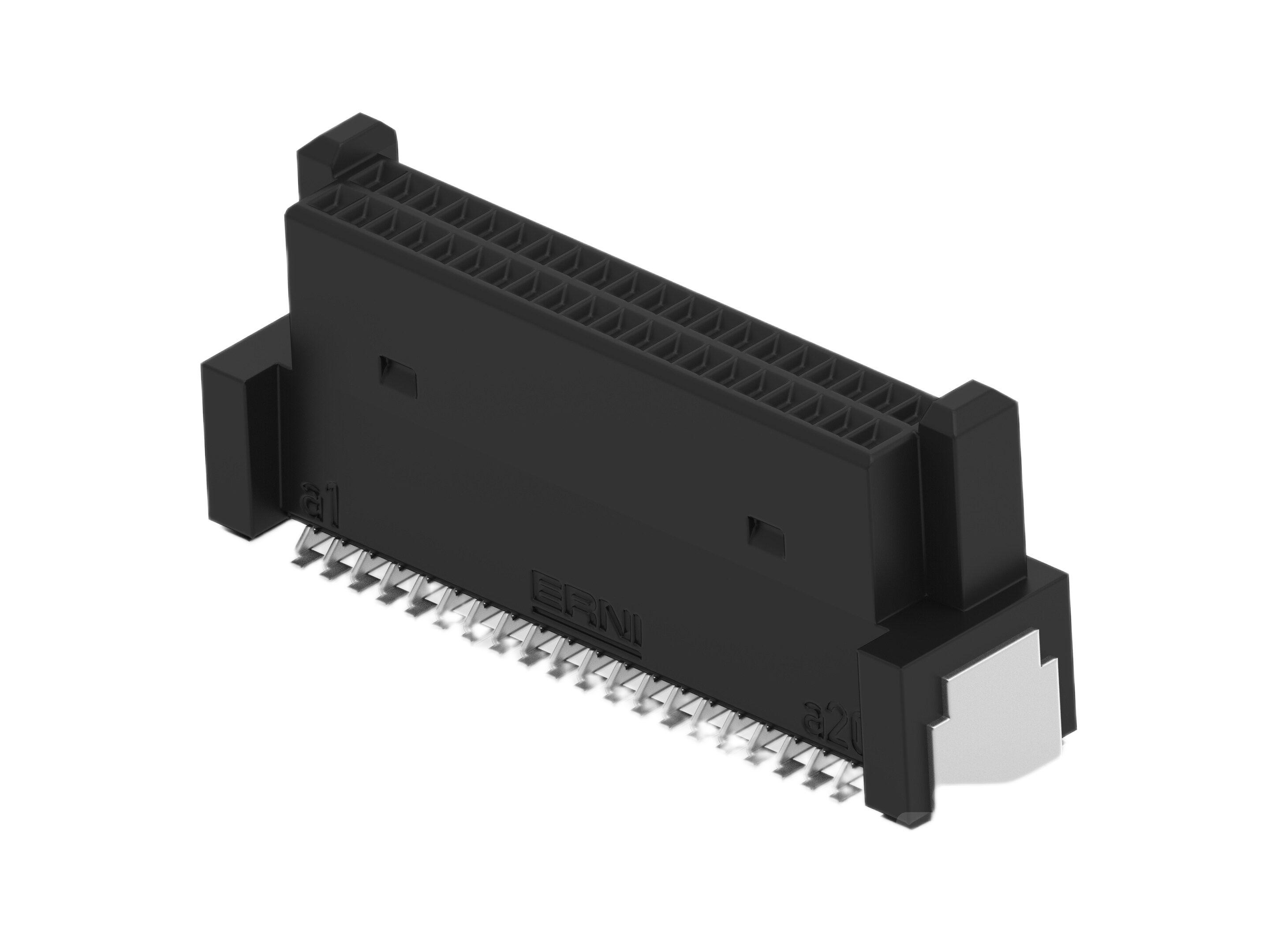 This is MicroCon Series Vertical Surface Mount PCB Socket 40-Contact 2-Row 0.8mm Pitch Surface Mount Termination manufactured by ERNI. The manufacturer part number is 294029-E. The product has a current rating of 2.82a. It has a standard 6mm stacking height . The product is available in surface mount configuration. Moreover, the product has a nominal 500 v ac voltage rating. The product erni microcon, is a highly preferred choice for users. It has vertical body orientation. It allows surface mount termination method. It allows board to board connector system. It comes in 2 of rows. The high-quality au is used as contact plating material. Moreover, the product is 0.8mm. The product contains 40 contacts. It comes in pcb mount receptacle configuration. The product is made from sturdy copper alloy materials.