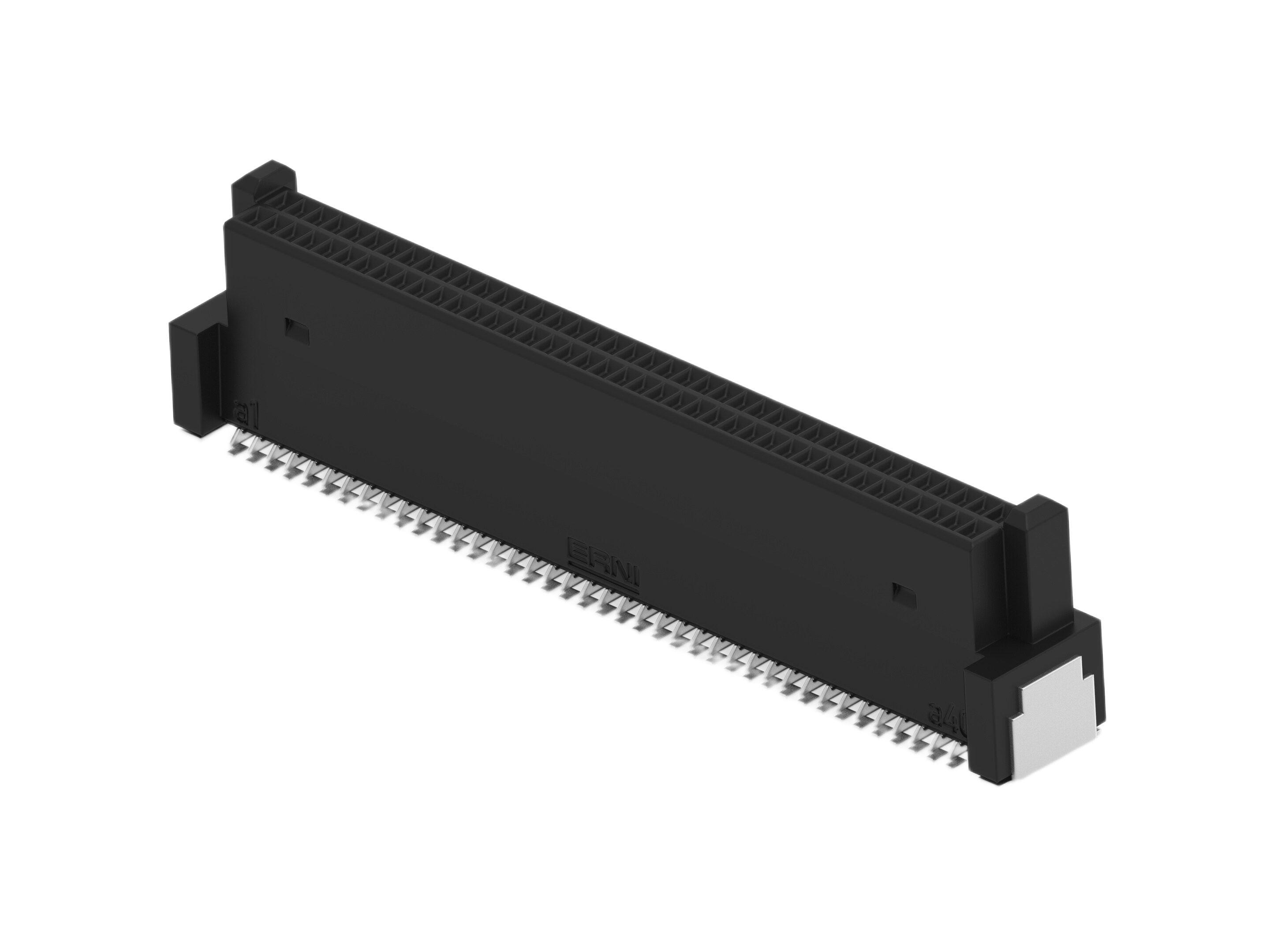 This is MicroCon Series Vertical Surface Mount PCB Socket 80-Contact 2-Row 0.8mm Pitch Surface Mount Termination manufactured by ERNI. The manufacturer part number is 294032-E. The product has a current rating of 2.1a. It has a standard 8mm stacking height . The product is available in surface mount configuration. Moreover, the product has a nominal 500 v ac voltage rating. The product erni microcon, is a highly preferred choice for users. It has vertical body orientation. It allows surface mount termination method. It allows board to board connector system. It comes in 2 of rows. The high-quality au is used as contact plating material. Moreover, the product is 0.8mm. The product contains 80 contacts. It comes in pcb mount receptacle configuration. The product is made from sturdy copper alloy materials.