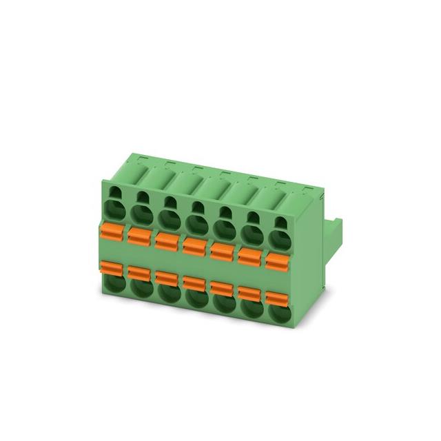 This is manufactured by Phoenix Contact. The manufacturer part number is 1962655. The product has a current rating of 12a. Moreover, the product has a nominal 630 v voltage rating. The product tfkc 2.5/ 7-st-5.08, is a highly preferred choice for users. It has a decent green colour. The product is made from highly stable and reliable polyamide, tin. It allows spring cage termination method. Moreover, the product is 5.08mm. The product contains 7 contacts. It is assigned with possible HTSUS value of 8536.90.4000. The product is rohs compliant. Moreover, it has screwless - push-in spring terminal style. The product also features robust polyamide (pa), nylon housing material. The typical length of the wire strip is 10mm. It comes in plug, female sockets configuration. The product carries possible position value of 7. A 0.2-2.5mm² of wire gauge. It also a 180° plug wire entry. 0.870" (22.10mm) of insulation height. It carries ul94 v-0 of material flammability rating. The phoenix contact's product offers user-desired applications. Its typical moisture sensitivity level is 1 (unlimited). An IEC current of 12a. The product carries 1 (mate), 2 (input) levels. While 12-26 awg is its range or wire gauge. While 300 v is the typical voltage of the product. It has a long 14 weeks standard lead time. The mating finish of the contact is tin. The nominal voltage of the product is 630 v. The splendid features of the product include retention latches (non-wire side). The product is available in free hanging (in-line) configuration. It has a classic green colour. The product combicon tfkc, is a highly preferred choice for users. It has 7 (mate), 14 (input) positions each level. In addition, bulk is the available packaging type of the product. The typical current includes 10 a. Moreover, the product is 0.200" (5.08mm). The product is designated with the ear99 code number.
