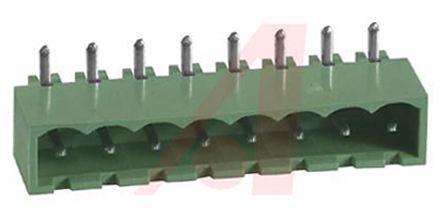 This is 5.08mm Pitch Horizontal Pluggable Terminal Block PCB Header PCB Mount 8 Way manufactured by Altech. The manufacturer part number is PHP08-5,08. The product has a current rating of 12 (cruus) a, 16 (iec) a. The product is available in pcb mount configuration. Moreover, the product has a nominal 300 (cruus) v, 450 (iec) v voltage rating. In addition, male is the available "Gender" of the product. It has a decent green colour. The product is made from highly stable and reliable polyamide. Its accurate length is 42.64mm. It allows pc pins termination method. Furthermore, the product is 12.2mm wide. The product comes in 8.5mm depth. It comes in 1 of rows. Moreover, the product is 5.08mm. The product contains 8 contacts. It comes in pcb header configuration. It has horizontal body orientation.