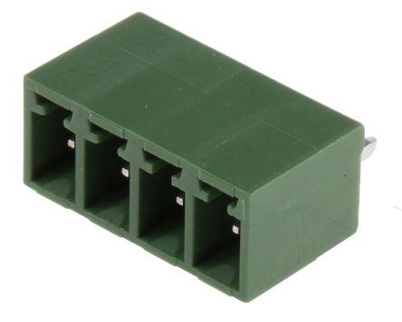 This is 3.81mm Pitch Straight PCB Terminal Strip PCB Header Through Hole 4 Way manufactured by RS Pro. The manufacturer part number is 790-0884. The product has a current rating of 10a. The product is available in through hole configuration. Moreover, the product has a nominal 300 v voltage rating. In addition, male is the available "Gender" of the product. It has a decent green colour. The product is made from highly stable and reliable polyamide. Its accurate length is 15.24mm. It allows push in termination method. Furthermore, the product is 9.2mm wide. The product comes in 6.9mm depth. It comes in 1 of rows. Moreover, the product is 3.81mm. The product contains 4 contacts. It comes in pcb header configuration. It has straight body orientation.