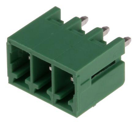 This is 155 Series 3.5mm Pitch Straight PCB Terminal Block PCB Header Vertical Mount 3 Way manufactured by RS Pro. The manufacturer part number is 874-5164. The product 155, is a highly preferred choice for users. The product has a current rating of 8 (ul) a, 14 (iec) a. The product is available in vertical mount configuration. Moreover, the product has a nominal 320 v voltage rating. In addition, male is the available "Gender" of the product. It has a decent green colour. The product is made from highly stable and reliable nylon 66. It allows plug-in termination method. Furthermore, the product is 9.2 mm wide. The product comes in 7 mm depth. It comes in 1 of rows. Moreover, the product is 3.5mm. The product contains 3 contacts. It comes in pcb header configuration. It has straight body orientation.