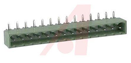 This is 5.08mm Pitch Horizontal Pluggable Terminal Block PCB Header PCB Mount 14 Way manufactured by Altech. The manufacturer part number is PHP14-5,08. The product has a current rating of 12 (cruus) a, 16 (iec) a. The product is available in pcb mount configuration. Moreover, the product has a nominal 300 (cruus) v, 450 (iec) v voltage rating. In addition, male is the available "Gender" of the product. It has a decent green colour. The product is made from highly stable and reliable polyamide. Its accurate length is 73.12mm. It allows pc pins termination method. Furthermore, the product is 12.2mm wide. The product comes in 8.5mm depth. It comes in 1 of rows. Moreover, the product is 5.08mm. The product contains 14 contacts. It comes in pcb header configuration. It has horizontal body orientation.