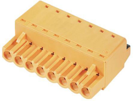 This is BL 5.08 Series 5.08mm Pitch Straight Pluggable Terminal Block Plug Cable Mount 3 Way manufactured by Weidmuller. The manufacturer part number is BLF 5.08/03/180 SN O -1013690000. The product bl 5.08, is a highly preferred choice for users. The product has a current rating of 14a. The product is available in cable mount configuration. Moreover, the product has a nominal 400 v voltage rating. In addition, female is the available "Gender" of the product. It has a decent orange colour. The product is made from highly stable and reliable nylon. Its accurate length is 15.24mm. It allows push in termination method. Furthermore, the product is 12.5mm wide. The product comes in 17.4mm depth. It comes in 1 of rows. Moreover, the product is 5.08mm. The product contains 3 contacts. It comes in plug configuration. It has straight body orientation.