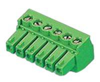 This is 3.81mm Pitch Straight PCB Terminal Strip PCB Header Cable Mount 6 Way manufactured by RS Pro. The manufacturer part number is 790-0878. The product has a current rating of 16a. The product is available in cable mount configuration. Moreover, the product has a nominal 300 v voltage rating. In addition, female is the available "Gender" of the product. It has a decent green colour. The product is made from highly stable and reliable polyamide. Its accurate length is 23.66mm. It allows push in termination method. Furthermore, the product is 15mm wide. The product comes in 24.4mm depth. It comes in 1 of rows. Moreover, the product is 3.81mm. The product contains 6 contacts. It comes in pcb header configuration. It has straight body orientation.