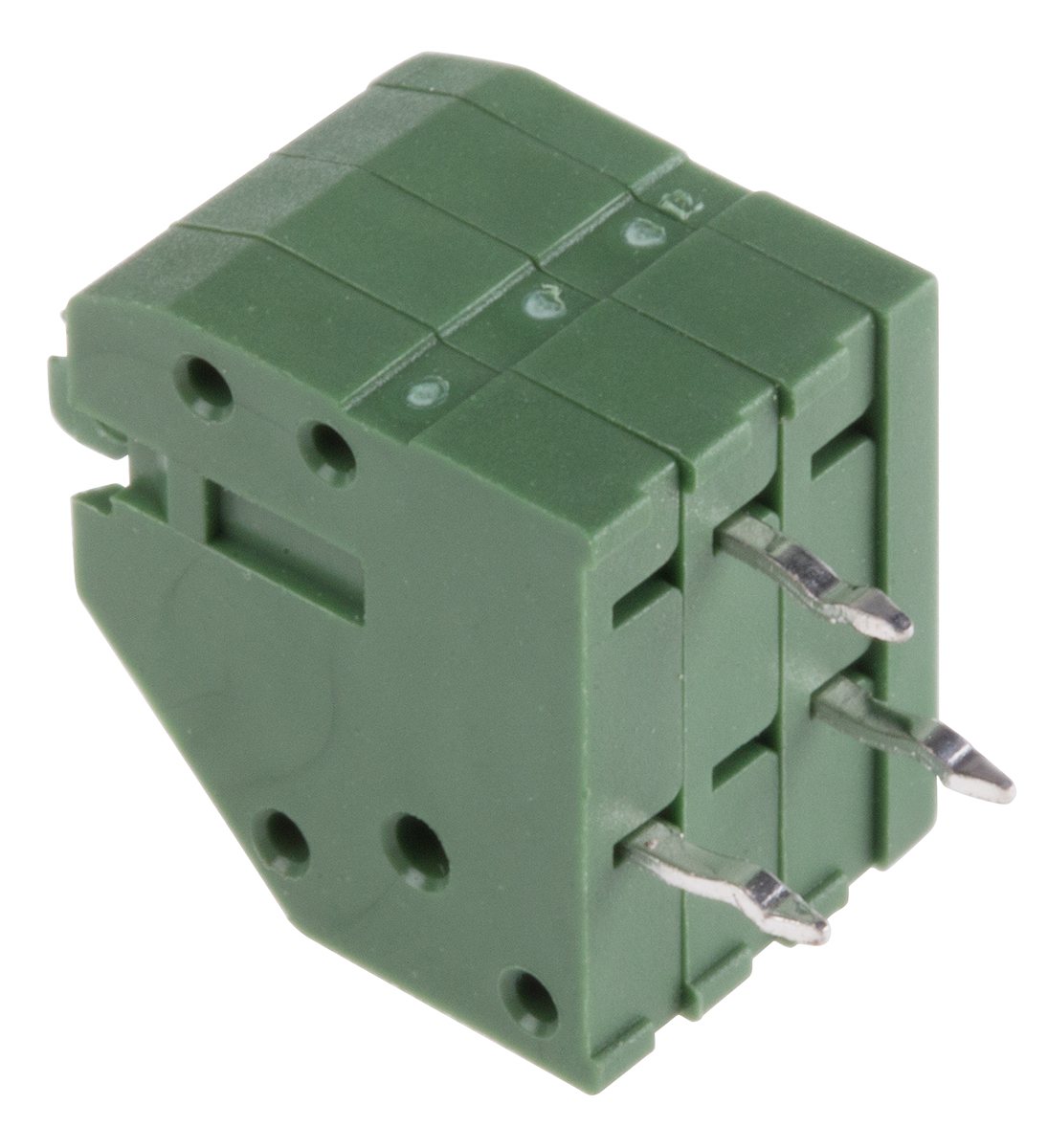 This is 2.5mm Pitch Vertical PCB Terminal Strip Through Hole 3 Way manufactured by TE Connectivity. The manufacturer part number is 1-2834021-3. The product has a current rating of 5a. The product is available in through hole configuration. Moreover, the product has a nominal 300 v ac voltage rating. In addition, female is the available "Gender" of the product. It has a decent green colour. The product is made from highly stable and reliable nylon 66. Its accurate length is 9mm. It allows solder termination method. Furthermore, the product is 12mm wide. The product comes in 12.6mm depth. It comes in 1 of rows. Moreover, the product is 2.5mm. The product contains 3 contacts. It comes in terminal block configuration. It has vertical body orientation.