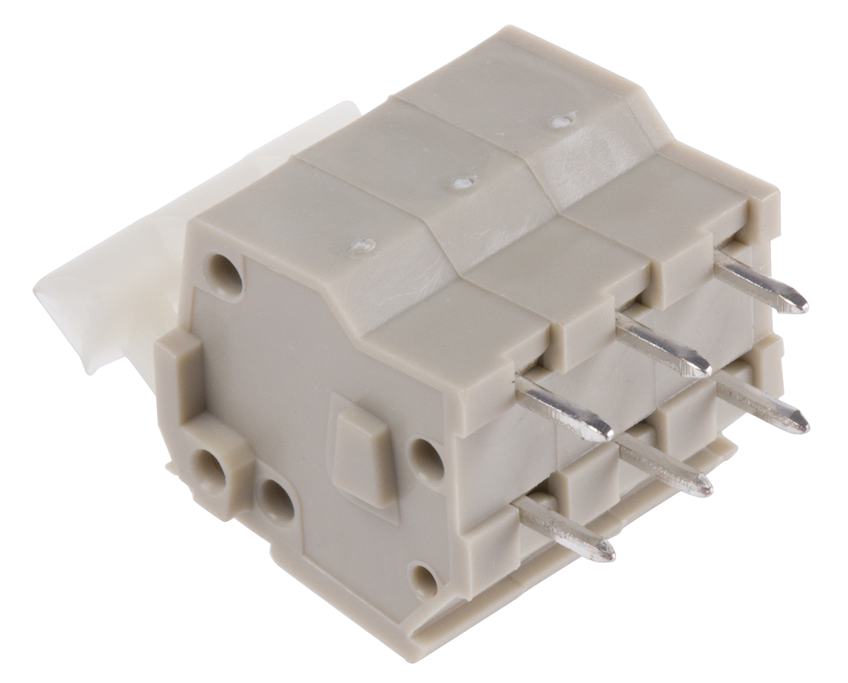 This is 5mm Pitch Horizontal PCB Terminal Strip Through Hole 3 Way manufactured by TE Connectivity. The manufacturer part number is 2834082-2. The product has a current rating of 20a. The product is available in through hole configuration. Moreover, the product has a nominal 300 v ac voltage rating. In addition, female is the available "Gender" of the product. It has a decent grey colour. The product is made from highly stable and reliable nylon 66. Its accurate length is 17.9mm. It allows solder termination method. Furthermore, the product is 14.2mm wide. The product comes in 13.6mm depth. It comes in 1 of rows. Moreover, the product is 5mm. The product contains 3 contacts. It comes in terminal block configuration. It has horizontal body orientation.