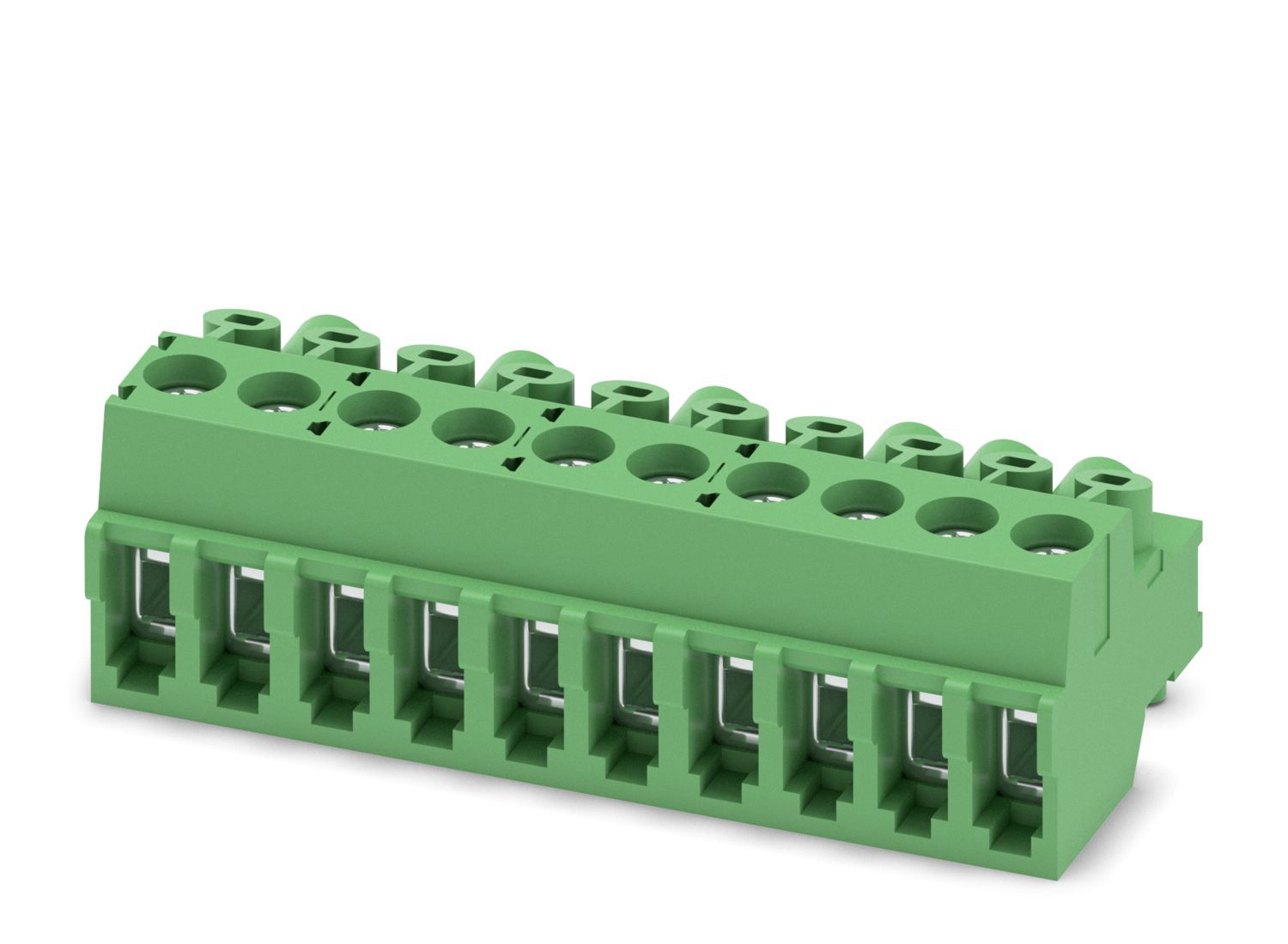 This is COMBICON PT Series 3.5mm Pitch Pluggable Terminal Block Plug 10 Way manufactured by Phoenix Contact. The manufacturer part number is 1984248. The product has a current rating of 6a. Moreover, the product has a nominal 400 v voltage rating. The product pt 1.5/10-pvh-3.5-a, is a highly preferred choice for users. It has a decent green colour. The product is made from highly stable and reliable polyamide, tin. It allows screw termination method. Moreover, the product is 3.5mm. The product contains 10 contacts.