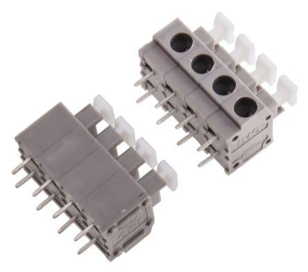 This is 4101 Series 5mm Pitch Straight PCB Terminal Block PCB Mount 4 Way manufactured by RS Pro. The manufacturer part number is 874-5492. The product 4101, is a highly preferred choice for users. The product has a current rating of 10 (ul) a, 24 (iec) a. The product is available in pcb mount configuration. Moreover, the product has a nominal 450 v voltage rating. In addition, female is the available "Gender" of the product. It has a decent grey colour. The product is made from highly stable and reliable polyamide. Its accurate length is 20.95mm. It allows push in termination method. Furthermore, the product is 12.5mm wide. The product comes in 13.3mm depth. It comes in 1 of rows. Moreover, the product is 5mm. The product contains 4 contacts. It comes in pcb terminal block configuration. It has straight body orientation.