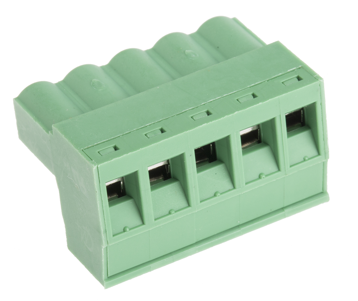 This is 5.08mm Pitch Straight PCB Terminal Block Clamp Terminal Block PCB Mount 5 Way manufactured by RS Pro. The manufacturer part number is 144-4059. The product has a current rating of 15a. The product is available in through hole configuration. Moreover, the product has a nominal 450 v voltage rating. It has a decent green colour. The product is made from highly stable and reliable nylon 66. It allows screw termination method. It comes in 1 of rows. Moreover, the product is 5.08mm. The product contains 5 contacts. It has straight body orientation.