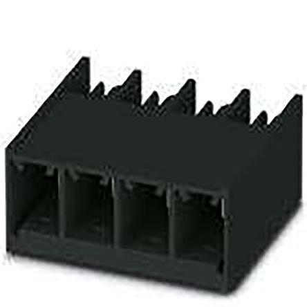 This is 7.62mm Pitch Straight PCB Terminal Block Printed-Circuit Board Connector Cable Mount 4 Way manufactured by Phoenix Contact. The manufacturer part number is 1717018. The product pc 6/ 4-g1-7.62 bk, is a highly preferred choice for users. The product has a current rating of 41a. The product is available in cable mount configuration. Moreover, the product has a nominal 630 v voltage rating. In addition, female is the available "Gender" of the product. It has a decent black colour. The product is made from highly stable and reliable copper alloy. Its accurate length is 28.2mm. It allows solder termination method. Furthermore, the product is 30.88mm wide. The product comes in 13.5mm depth. It comes in 1 of rows. Moreover, the product is 7.62mm. The product contains 4 contacts. It comes in printed-circuit board connector configuration. It has straight body orientation.