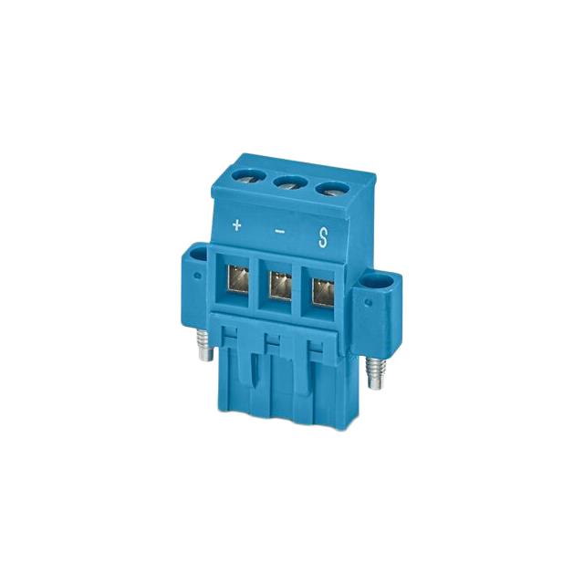 This is 3-pin PCB Terminal Block 5.08mm Pitch Rows manufactured by Phoenix Contact. The manufacturer part number is 1161208. The product is available in screw configuration. It comes in 1 of rows. Moreover, the product is 5.08mm. The product contains 3 contacts. It is assigned with possible HTSUS value of 8536.90.4000. Moreover, it has screw - clamping yoke (tension sleeve) terminal style. The product also features robust polyamide (pa), nylon housing material. The product has -40°c ~ 100°c operating temperature range. The typical length of the wire strip is 7mm. It comes in plug, female sockets configuration. The product carries possible position value of 3. A 0.2-2.5mm² of wire gauge. It also a 90° plug wire entry. 1.024" (26.01mm) of insulation height. It carries ul94 v-0 of material flammability rating. It is shipped in bulk package . An IEC current of 12a. While 12-30 awg is its range or wire gauge. While 300 v is the typical voltage of the product. It carries torque - screw values of 0.3 nm (2.6 lb-in). It has a long 8 weeks standard lead time. The mating finish of the contact is tin. The nominal voltage of the product is 320 v. The splendid features of the product include mating flange, positions stamped, retention latches (wire side). The product is available in free hanging (in-line) configuration. It has a classic blue colour. The product combicon mvstbr, is a highly preferred choice for users. It has 3 positions each level. The typical current includes 15 a. Moreover, the product is 0.200" (5.08mm). The product carries 1 levels. The product is designated with the ear99 code number. The product is made from sturdy copper alloy materials.