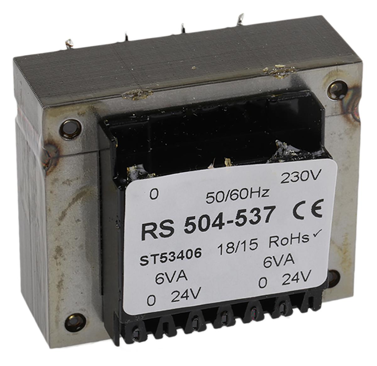 This is 24V ac 2 Output Through Hole PCB Transformer 12VA manufactured by RS Pro. The manufacturer part number is 504-537. Additionally, the product is supplied with 2 outputs. The given dimensions of the product include 54 x 45 x 41mm. The typical product's weight is 400g. It has about 230v ac primary voltage rating . Its accurate length is 54mm. It carries 60hz of maximum operating frequency. Furthermore, the product is 45mm wide. The product comes in 41mm depth. In addition, it has a secondary 24v ac voltage rating . It has a minimum 50hz operating frequency . The product is available in through hole configuration. Feature 12va of power rating.