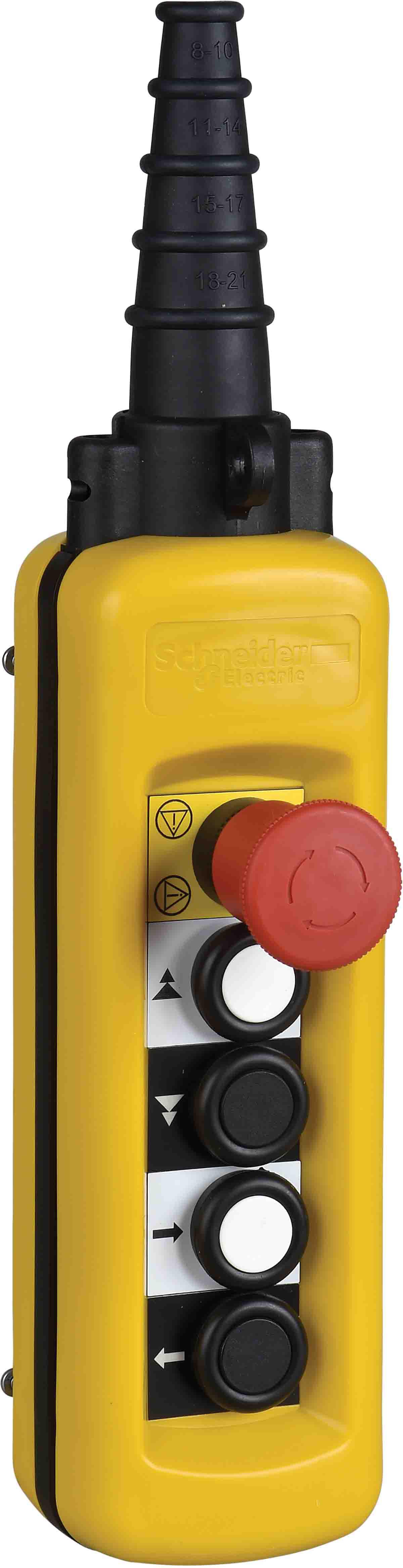 This is 4 Button Push Button Pendant Station - 1 NC + 2 NO XAC 5 Cutouts Red Round IP65 manufactured by Schneider Electric. The manufacturer part number is XACA4914. The contact is equipped with 1 nc + 2 no configuration. Better World Verification Options - green premium. Is it a better world product? yes. It is IP rated with ip65.