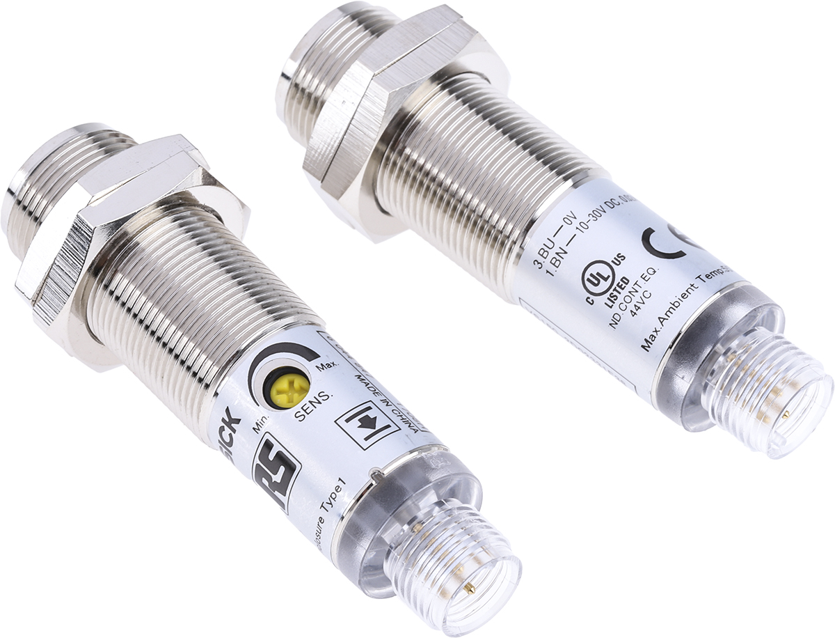 This is Through Beam (Emitter) Photoelectric Sensor 28 m Detection Range PNP IP67 Barrel Style manufactured by RS Pro. The manufacturer part number is 729-5123. It also carries 100 ma maximum current. The product complies with all safety standards, such as ce, e348498, nrkh7, rohs compliant, ul listed (nrkh. The product is available in flange mount configuration. It is IP rated with ip67. The sensor has a barrel design. It has provided with m12 4 pin connector electrical connection. The device is designed to detect through beam. Furthermore, it has apnp output. The product also features robust nickel plated brass, pc housing material. The product has 28 m of detection range. Whereas, the minimum operating temperature of the product is -25°c. It responds within <500 μs. It has 30v maximum DC voltage. It has a maximum operating temperature of +55°c. Uses led as a light source.