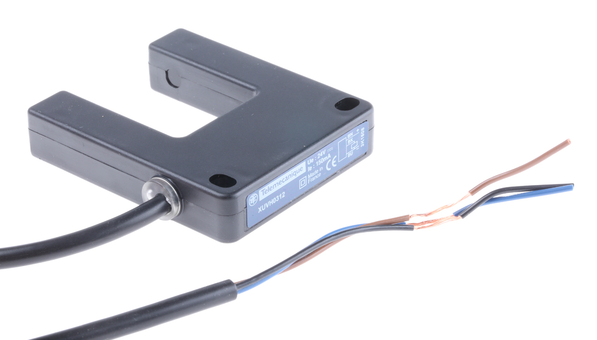 This is Through Beam (Fork) Photoelectric Sensor 30 mm Detection Range PNP IP64 Fork Style manufactured by Telemecanique Sensors. The manufacturer part number is XUVH0312. It has 24v maximum DC voltage. It also carries 150 ma maximum current. It is IP rated with ip64. The sensor has a fork design. It has provided with 3 wire cable 2 m electrical connection. The device is designed to detect through beam. Furthermore, it has apnp output. The product also features robust abs, pc housing material. The product has 30 mm of detection range. Whereas, the minimum operating temperature of the product is -5°c. It responds within 500 μs. It has a maximum operating temperature of +55°c. Uses infrared as a light source.