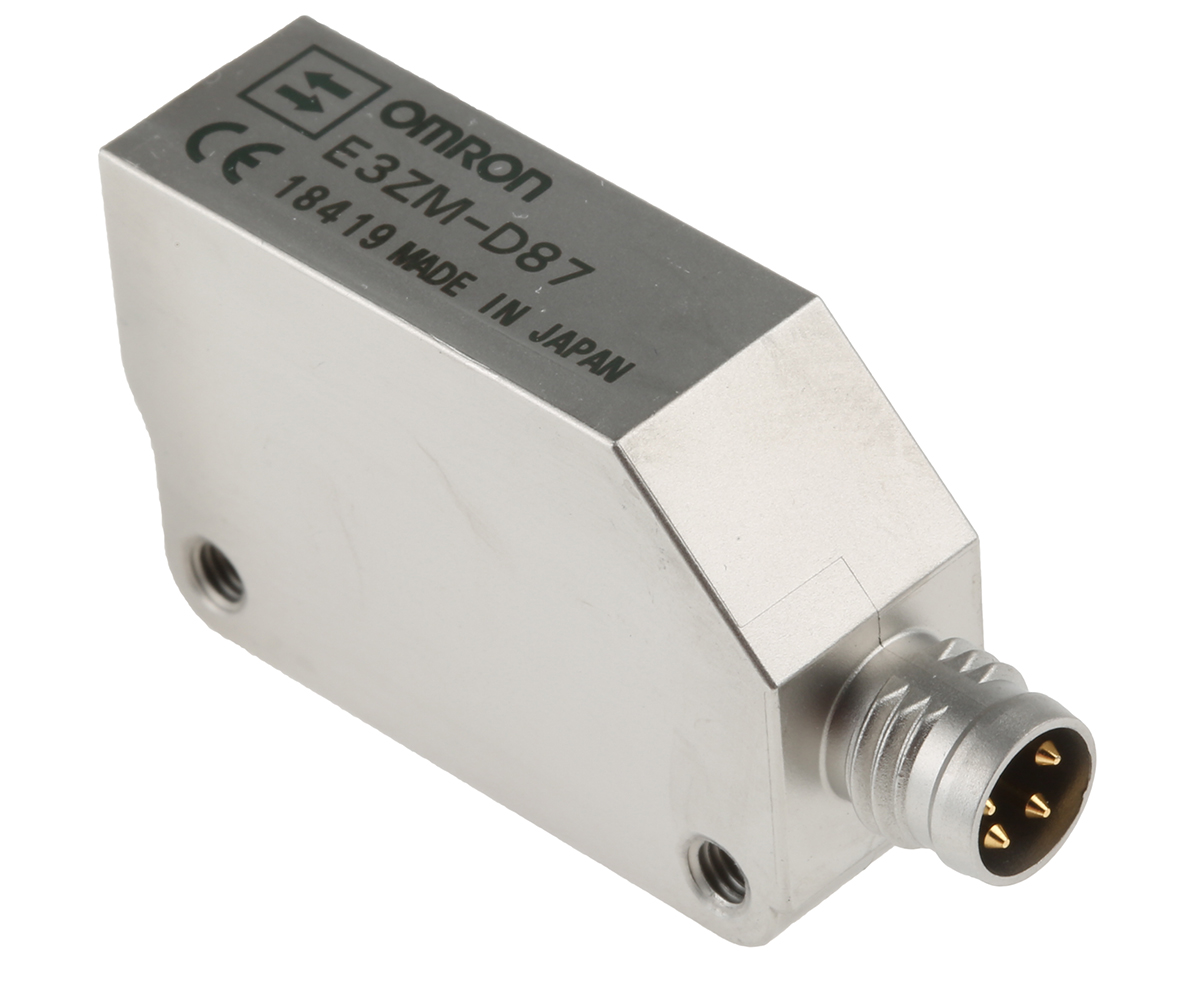 This is Diffuse Photoelectric Sensor 1 m Detection Range PNP IP69K Block Style manufactured by Omron. The manufacturer part number is E3ZM-D87. It has 30v maximum DC voltage. Whereas, the minimum operating temperature of the product is -25°c. It also carries 100 ma maximum current. It is IP rated with ip69k. The product e3zm, is a highly preferred choice for users. It has provided with m8 4 pin connector electrical connection. The device is designed to detect diffuse. Furthermore, it has apnp output. The product also features robust stainless steel housing material. The product has 1 m of detection range. The sensor has a block design. It responds within 1 ms. It has a maximum operating temperature of +55°c. Uses infrared as a light source.