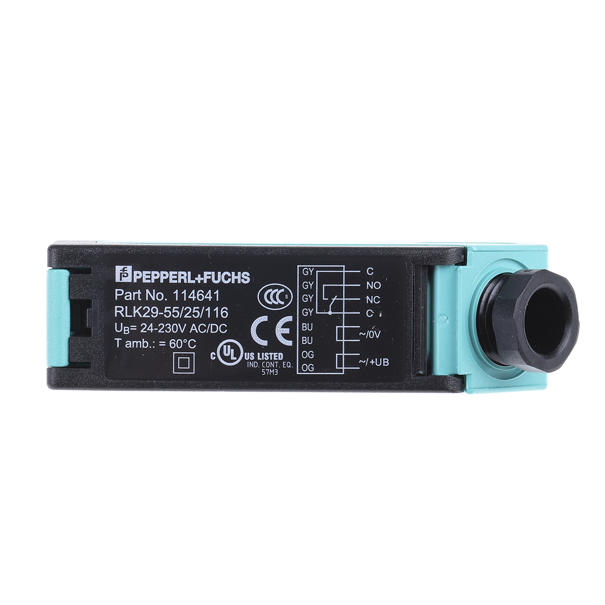 This is Retro-reflective Photoelectric Sensor 12 m Detection Range Relay IP67 Block Style manufactured by Pepperl + Fuchs. The manufacturer part number is RLK29-55/25/116-SET. It has 230v maximum DC voltage. A bespoke product carries 230v of maximum AC voltage. It also carries 2 a maximum current. It is IP rated with ip67. The sensor has a block design. It has provided with 6 terminal screw electrical connection. The device is designed to detect retroreflective. Furthermore, it has arelay output. The product also features robust abs housing material. The product has 12 m of detection range. Whereas, the minimum operating temperature of the product is -20°c. It responds within 50 ms. It has a maximum operating temperature of +60°c. Uses led as a light source.