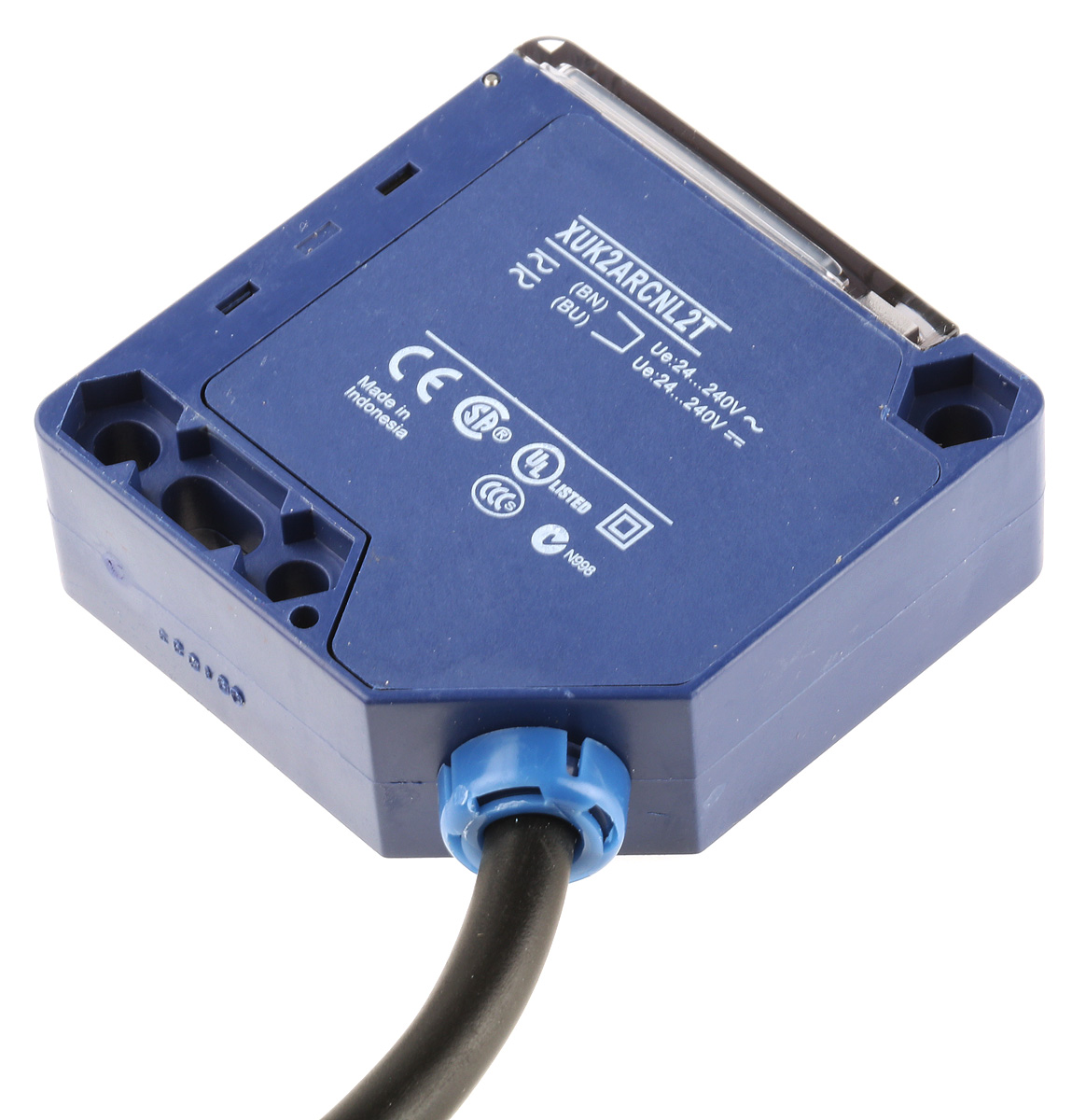 This is Through Beam (Emitter) Photoelectric Sensor 30 m Detection Range Solid State Block Style IP65 manufactured by Telemecanique Sensors. The manufacturer part number is XUK2ARCNL2T. It has 240v maximum DC voltage. A bespoke product carries 240v of maximum AC voltage. Whereas, the minimum operating temperature of the product is -25°c. It also carries 3 a maximum current. It is IP rated with ip65. The sensor has a compact design. It has provided with 2 wire cable 2 m electrical connection. The device is designed to detect through beam. Furthermore, it has asolid state, thru beam photo-electric sensor transmitter output. The product also features robust pbt housing material. The product has 30 m of detection range. It responds within <25 ms. It has a maximum operating temperature of +55°c. Uses infrared as a light source.