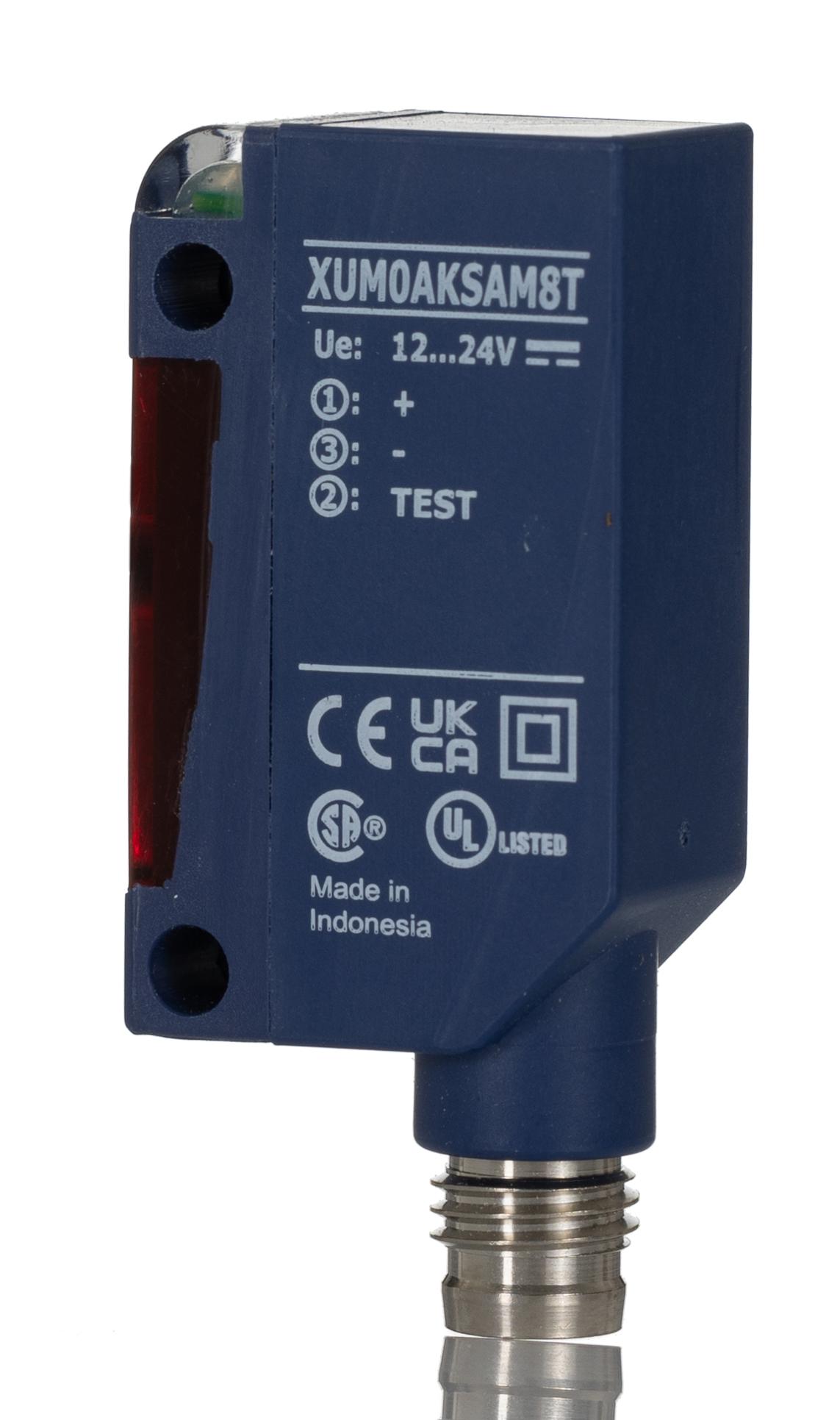 This is Through Beam Accessory (Emitter) Photoelectric Sensor 10 m Detection Range Relay Block Style IP67 manufactured by Telemecanique Sensors. The manufacturer part number is XUM0AKSAM8T. It has 24v maximum DC voltage. It also carries 100 ma maximum current. It is IP rated with ip67. The sensor has a block design. It has provided with m8 4 pin connector electrical connection. The device is designed to detect through beam. Furthermore, it has arelay output. The product also features robust pbt housing material. The product has 10 m of detection range. Whereas, the minimum operating temperature of the product is -25°c. It responds within <2 ms. It has a maximum operating temperature of +55°c. Uses infrared as a light source.
