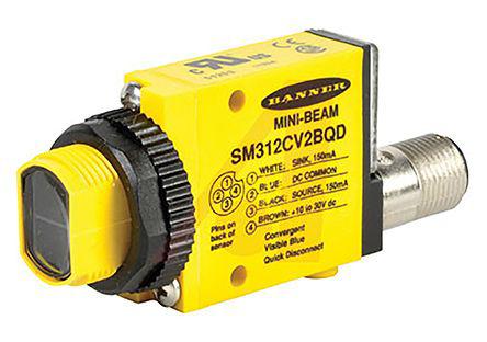This is Convergent Photoelectric Sensor Maximum of 49 mm Detection Range NPN (Current Sinking) PNP (Current Sourcing) manufactured by Banner. The manufacturer part number is SM312CV2BQD. It has 30v maximum DC voltage. It also carries 25 ma maximum current. It is IP rated with ip67. The sensor has a block design. It has provided with 4-pin euro connector electrical connection. The device is designed to detect convergent. Furthermore, it has anpn (current sinking), pnp (current sourcing) output. The product also features robust thermoplastic polyester housing material. The product has maximum of 49 mm of detection range. Whereas, the minimum operating temperature of the product is -20°c. Additionally, it has a/an visible blue led optical technology . It responds within 1 (dark) ms, 1 (light) ms. It has a maximum operating temperature of +70°c. Uses led as a light source.