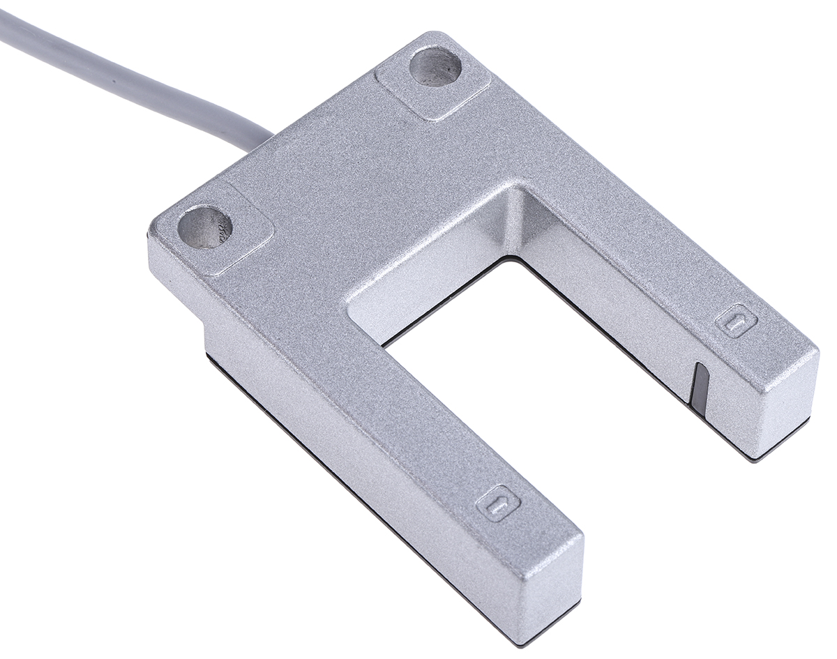 This is Through Beam (Fork) Photoelectric Sensor 30 mm Detection Range PNP-NO/NC IP67 Fork Style manufactured by RS Pro. The manufacturer part number is 903-3933. It also carries 15ma maximum current. The product complies with all safety standards, such as ce, iec. The product is available in panel mount configuration. It is IP rated with ip67. The product pu30, is a highly preferred choice for users. It has provided with 2m cable electrical connection. The device is designed to detect through beam. Furthermore, it has apnp nonc output. The product also features robust aluminium alloy housing material. Its switching mode is light / dark switching . The product has 30 mm of detection range. Whereas, the minimum operating temperature of the product is -15°c. The sensor has a fork design. It responds within action and reset less than 0.6ms. It has 30v maximum DC voltage. It has a maximum operating temperature of +55°c. The terminal is a pre-wired type. Uses infrared led as a light source.