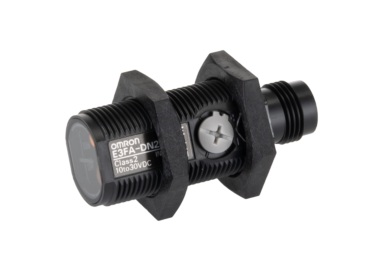 This is Diffuse Photoelectric Sensor 1 m Detection Range NPN IP67 IP69K Barrel Style manufactured by Omron. The manufacturer part number is E3FA-DN23. The product also features robust abs housing material. Whereas, the minimum operating temperature of the product is -25°c. It also carries 25 ma maximum current. It is IP rated with ip67/ip69k. The product e3fa, is a highly preferred choice for users. It has provided with m12 4 pin connector electrical connection. The device is designed to detect diffuse. Furthermore, it has anpn output. It has a typical thread size of m18. The product has 1 m of detection range. The sensor has a barrel design. It responds within 0.5 ms. It has 30v maximum DC voltage. It has a maximum operating temperature of +55°c. Uses red led as a light source.