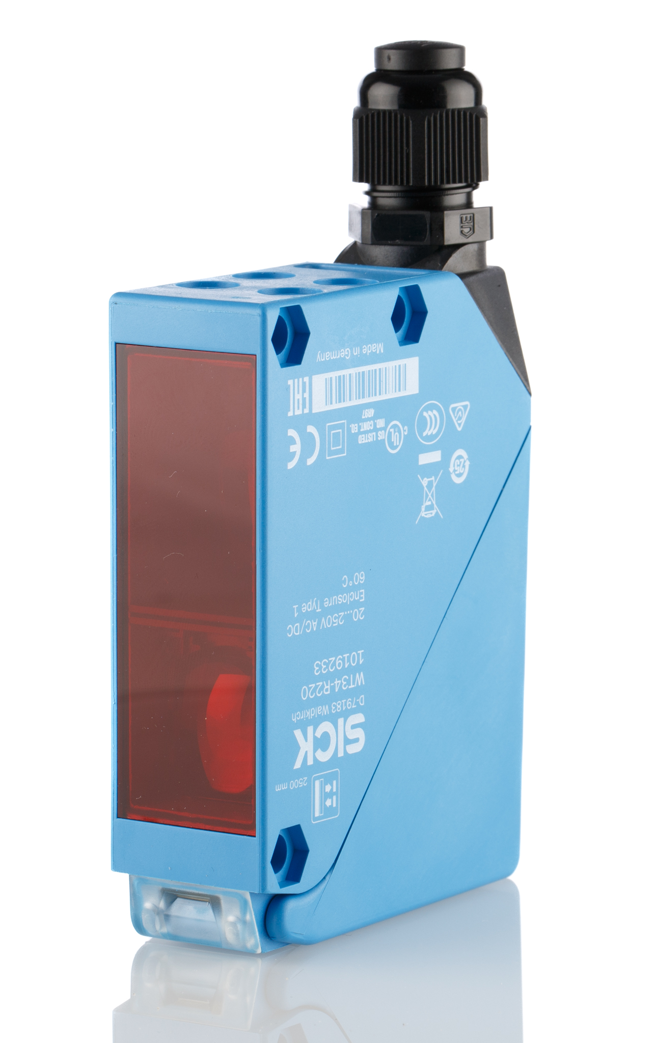 This is Background Suppression Photoelectric Sensor 100 → 2500 mm Detection Range NPN PNP IP67 Block Style manufactured by Sick. The manufacturer part number is WT34-R220. It has 240v maximum DC voltage. It also carries 4 a maximum current. The product is available in panel mount configuration. It is IP rated with ip67. The product w34, is a highly preferred choice for users. It has provided with 5 terminal screw electrical connection. The device is designed to detect background suppression. Furthermore, it has arelay output. The product also features robust abs housing material. The product has 100 mm → 2.5 m of detection range. Whereas, the minimum operating temperature of the product is -40°c. The sensor has a block design. It responds within =10 ms. It has a maximum operating temperature of +60°c. Uses infrared as a light source.