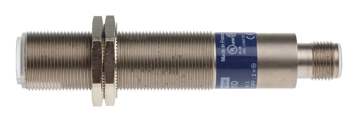 This is Photoelectric Sensor Diffuse Barrel Style 80 mm Detection Range PNP IP67 manufactured by Telemecanique Sensors. The manufacturer part number is XU5M18U1D. It has 24v maximum DC voltage. It also carries 100 ma maximum current. It is IP rated with ip67. The sensor has a barrel design. It has provided with m12 4 pin connector electrical connection. The device is designed to detect diffuse. Furthermore, it has apnp output. The product also features robust nickel plated brass housing material. The product has 80 mm of detection range. Whereas, the minimum operating temperature of the product is -25°c. It responds within <500 μs. It has a maximum operating temperature of +55°c. Uses led as a light source.