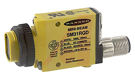 This is Turck Through Beam (Receiver) Photoelectric Sensor Maximum of 3 m Detection Range manufactured by Banner. The manufacturer part number is SM31RQD. It has 30v maximum DC voltage. It also carries 25 ma maximum current. It is IP rated with ip67. The sensor has a block design. It has provided with m12 4 pin connector electrical connection. The device is designed to detect through beam. Furthermore, it has anpn/pnp output. The product also features robust thermoplastic polyester housing material. The product has 3 m of detection range. Whereas, the minimum operating temperature of the product is -20°c. It responds within 1 ms. It has a maximum operating temperature of +70°c. Uses led as a light source.