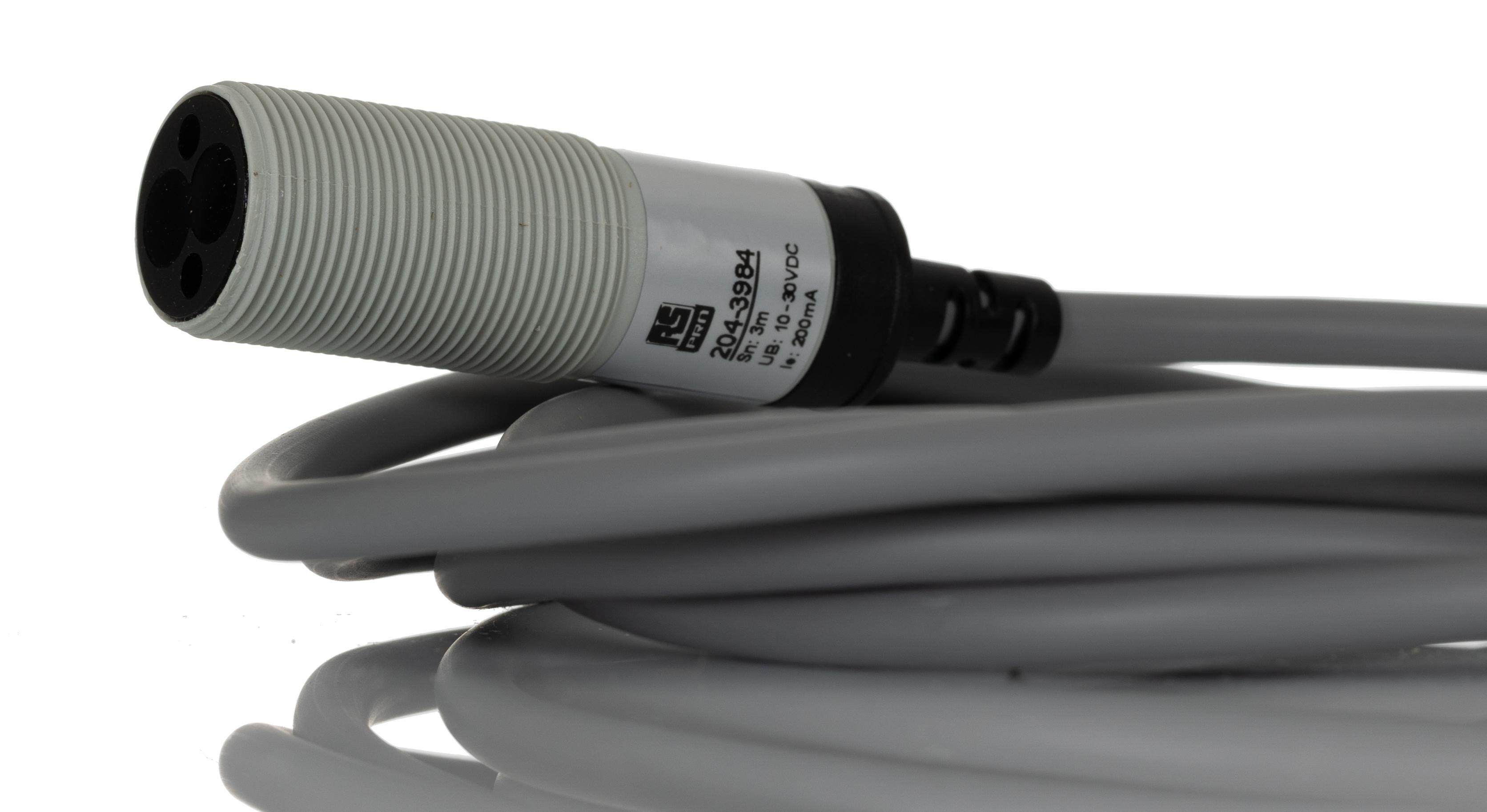 This is Retroreflective Photoelectric Sensor Barrel Sensor 3 m Detection Range manufactured by RS PRO. The manufacturer part number is 204-3984. It also carries 200ma maximum current. The product complies with all safety standards, such as ce. The product is available in screw nut configuration. It is IP rated with ip67. The product pr18s, is a highly preferred choice for users. It has provided with 2m cable electrical connection. The device is designed to detect retro reflective. Furthermore, it has anpn no+nc output. It has a typical thread size of 18 mm. The product also features robust pbt housing material. Its switching mode is light / dark switching . The product has 3 m of detection range. Whereas, the minimum operating temperature of the product is -15°c. The sensor has a barrel design. It responds within <8.2ms. It has 30v maximum DC voltage. It has a maximum operating temperature of +55°c. The terminal is a cable 2 m type. Uses infrared led as a light source.