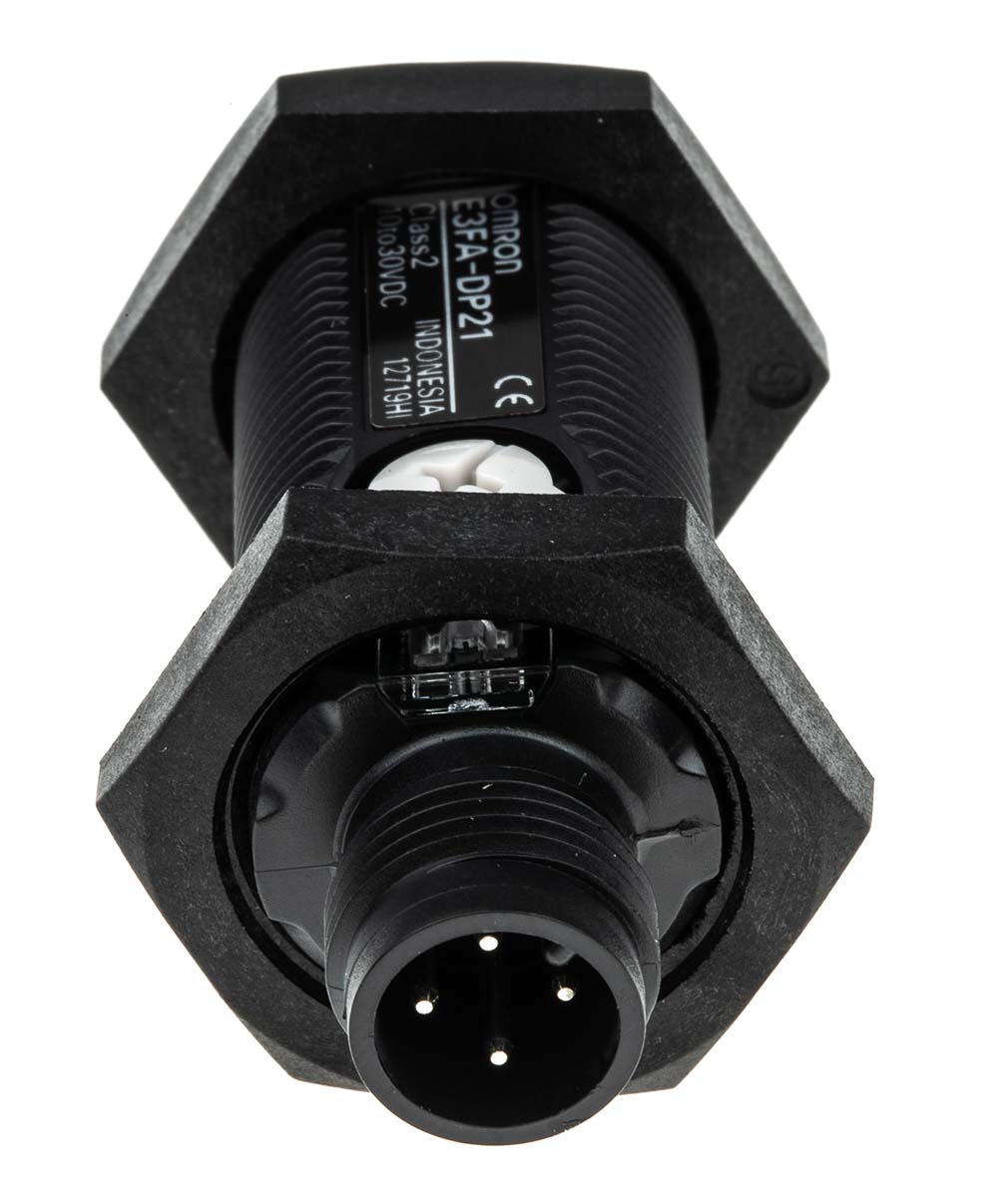 This is Diffuse Photoelectric Sensor Barrel Sensor 100 mm Detection Range manufactured by Omron. The manufacturer part number is E3FA-DP21. The product also features robust abs housing material. Whereas, the minimum operating temperature of the product is -25°c. It also carries 25 ma maximum current. It is IP rated with ip67/ip69k. The product e3fa, is a highly preferred choice for users. It has provided with m12 4 pin connector electrical connection. The device is designed to detect diffuse. Furthermore, it has apnp output. It has a typical thread size of m18. The product has 100 mm of detection range. The sensor has a barrel design. It responds within 0.5 ms. It has 30v maximum DC voltage. It has a maximum operating temperature of +55°c. Uses red led as a light source.
