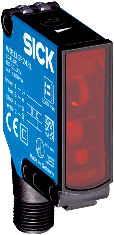 This is Energetic Photoelectric Sensor Rectangular Sensor 1000 mm Detection Range manufactured by SICK. The manufacturer part number is WTE11-2N2432. It also carries 100 ma maximum current. The product complies with all safety standards, such as ce. The product is available in panel mount configuration. It is IP rated with ip66, ip67. The product wte11, is a highly preferred choice for users. It has provided with 4-pin, male connector m12 electrical connection. The device is designed to detect energetic. Furthermore, it has anpn output. The product also features robust plastic housing material. Its switching mode is light / dark switching . The product has 1000 mm of detection range. Whereas, the minimum operating temperature of the product is -30°c. The sensor has a rectangular design. It responds within 2.5 ms. It has 30v maximum DC voltage. It has a maximum operating temperature of +60°c. The terminal is a 4-pin, male connector m12 type. Uses visible red as a light source.