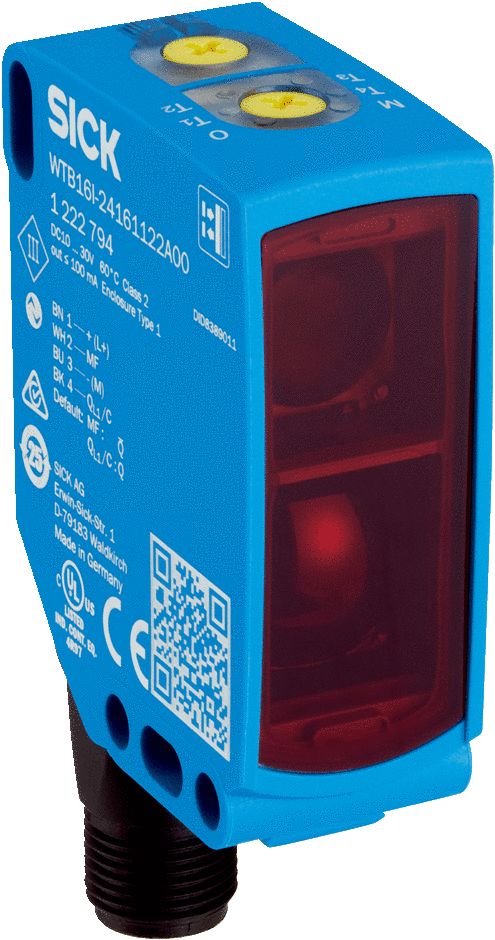 This is IO-LINK Photoelectric Sensor Rectangular Sensor 1000 mm Detection Range IO-LINK manufactured by SICK. The manufacturer part number is WTB16P-24161122A00. It also carries 100 ma maximum current. The product complies with all safety standards, such as ce, culus. The product is available in panel mount configuration. It is IP rated with ip66, ip67, ip69. Whereas, the minimum operating temperature of the product is -40°c. The product wtb16p, is a highly preferred choice for users. It has provided with 4-pin, male connector m12 electrical connection. The device is designed to detect io-link. Furthermore, it has apnp / npn output. The product also features robust plastic housing material. Its switching mode is light switching . The product has 1000 mm of detection range. It is tailored with io-link communication protocol . The sensor has a rectangular design. A bespoke product is io-link interface. It responds within 0.5 ms. It has 30v maximum DC voltage. It has a maximum operating temperature of +60°c. The terminal is a 4-pin, male connector m12 type. Uses visible red as a light source.