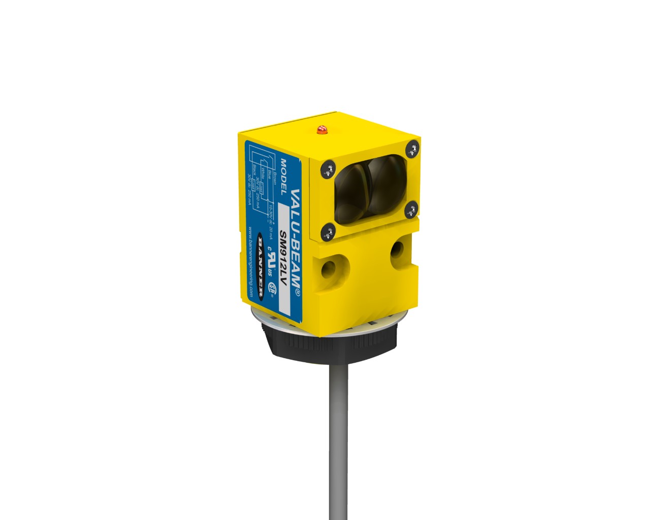 This is diffuse Photoelectric Sensor Barrel Sensor 150 m Detection Range manufactured by Banner. The manufacturer part number is SM912LVQDH. The sensor has a barrel design. It has provided with cable electrical connection. The device is designed to detect diffuse. Furthermore, it has anpn output. Its switching mode is light / dark switching . The product has 150 m of detection range.
