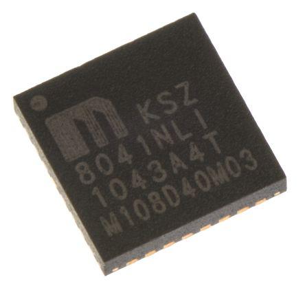 This is IEEE 802.3u Physical Layer Transceiver 3.3 V 32-Pin MLF manufactured by Micrel. The manufacturer part number is KSZ8041NLI TR. The given dimensions of the product include 5 x 5 x 0.85mm. The product is available in surface mount configuration. It has about 10 mbit/s, 100 mbit/s typical data rate . It is a type of single power supply. It comprises 1 channels per chip. In addition, the height is 0.85mm. It has 3.3 v of typical operating supply voltage. Furthermore, the product is 5mm wide. Its accurate length is 5mm. The package is a sort of mlf. Whereas, the minimum operating temperature of the product is -40 °c. It is ieee 802.3u standard supported . It has a maximum operating temperature of +85 °c. It contains 32 pins.