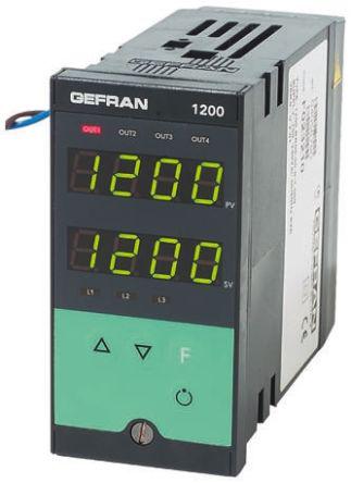 This is 1200 PID Temperature Controller 96 x 48 (1/8 DIN)mm 3 Output Relay 100 V ac 240 V ac Supply Voltage ON/OFF manufactured by Gefran. The manufacturer part number is 1200 RRR0 00 0 1. Additionally, it has a/an on/off type control . It features a remarkable led, multi line display. It has an attractive green colour display . It is IP rated with ip65. The product 1200, is a highly preferred choice for users. Whereas, its panel depth is about 100mm . Furthermore, it has arelay output. It has a configurable output relay . It features gefran 1200 range. Features 100 v ac, 240 v ac supply voltage. Whereas, the minimum operating temperature of the product is 0°c. The product's typical temperature range incudes 0 → +1750 °c. Additionally, the product is supplied with 3 outputs. It has a maximum operating temperature of +50°c. The product is available in 96 x 48 (1/8 din)mm size.