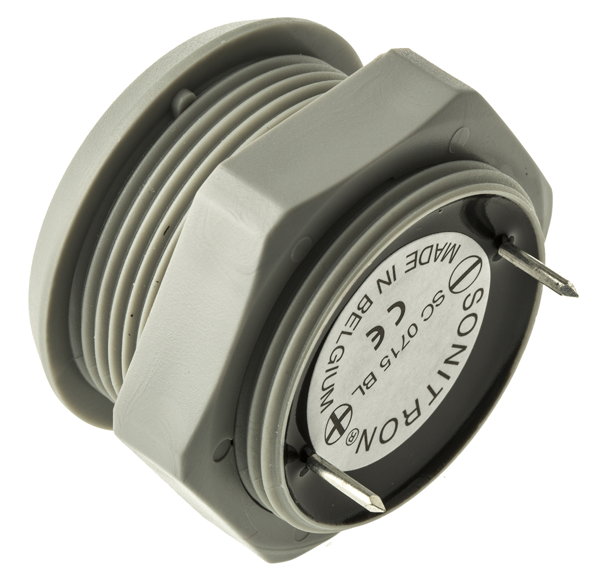 This is 98dB Panel Mount Continuous Internal Buzzer 36.5 x 33mm 0.7V dc Min 15V dc Max manufactured by Sonitron. The manufacturer part number is SC0715BL. It has a minimum 0.7v dc supply voltage . Its diameter is 36.5mm. The given dimensions of the product include 36.5 x 33mm. The product is available in panel mount configuration. It has a minimum 2975hz frequency . It features 13.4ma supply current. The product features a internal drive. Whereas, the minimum operating temperature of the product is -35°c. In addition, the height is 33.5mm. It has a/an continuous type tone . It features 4.025khz of maximum frequency. The product requires a maximum 15v dc supply voltage . Its sound level is about 98db . It has a maximum operating temperature of +75°c.