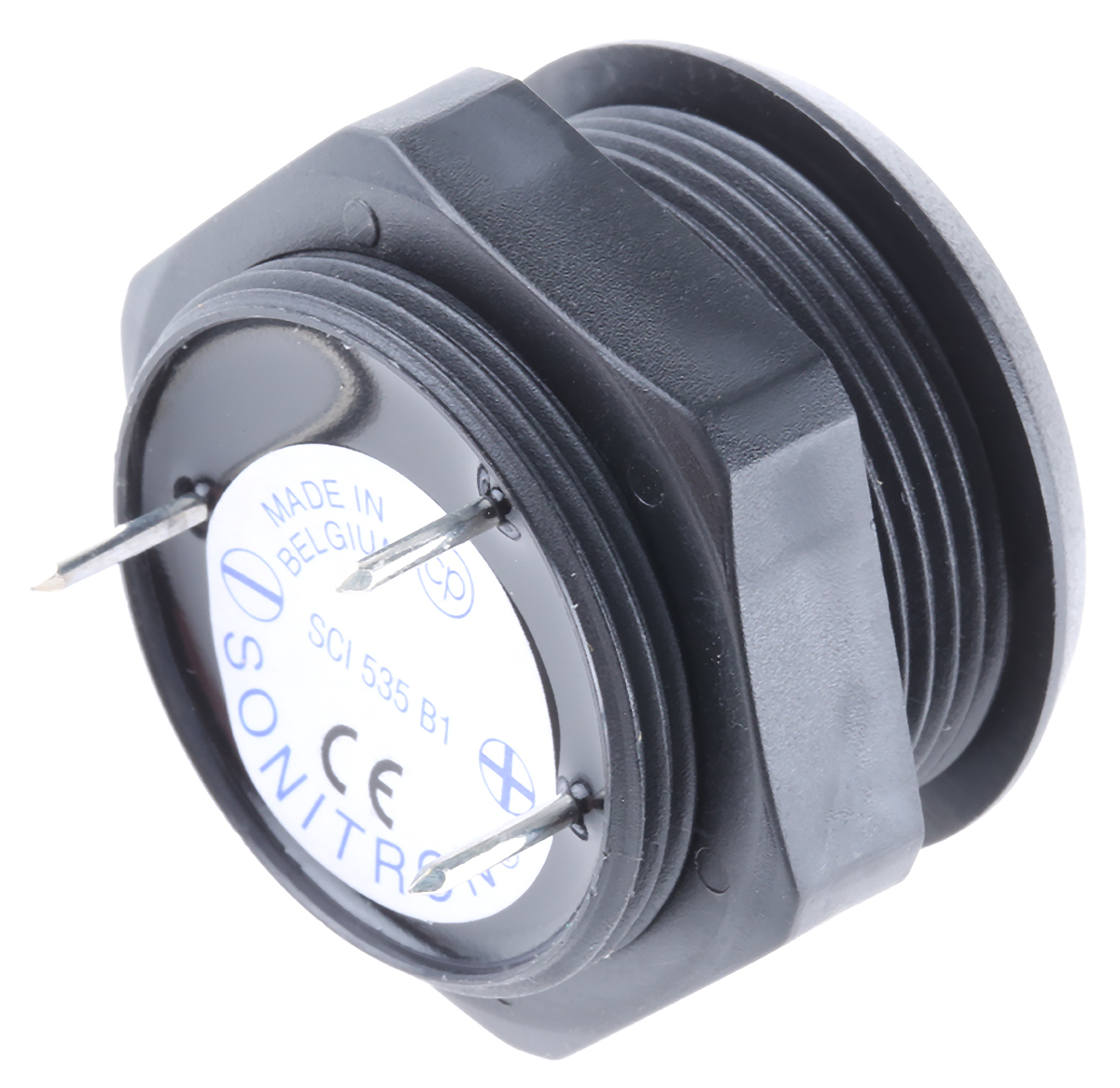 This is 86dB Panel Mount Multifunction Internal Piezo Buzzer 36.5 x 26mm 5V dc Min 35V dc Max manufactured by Sonitron. The manufacturer part number is SCI535B1 BLACK. It has a minimum 5v dc supply voltage . Its diameter is 36.5mm. The given dimensions of the product include 36.5 x 26mm. The product is available in panel mount configuration. It has a minimum 2975hz frequency . It features 12.2ma supply current. The product features a internal drive. In addition, the height is 26mm. It has a/an multifunction type tone . It features 4.025khz of maximum frequency. Whereas, the minimum operating temperature of the product is -40°c. The product requires a maximum 35v dc supply voltage . Its sound level is about 86db . It has a maximum operating temperature of +85°c.