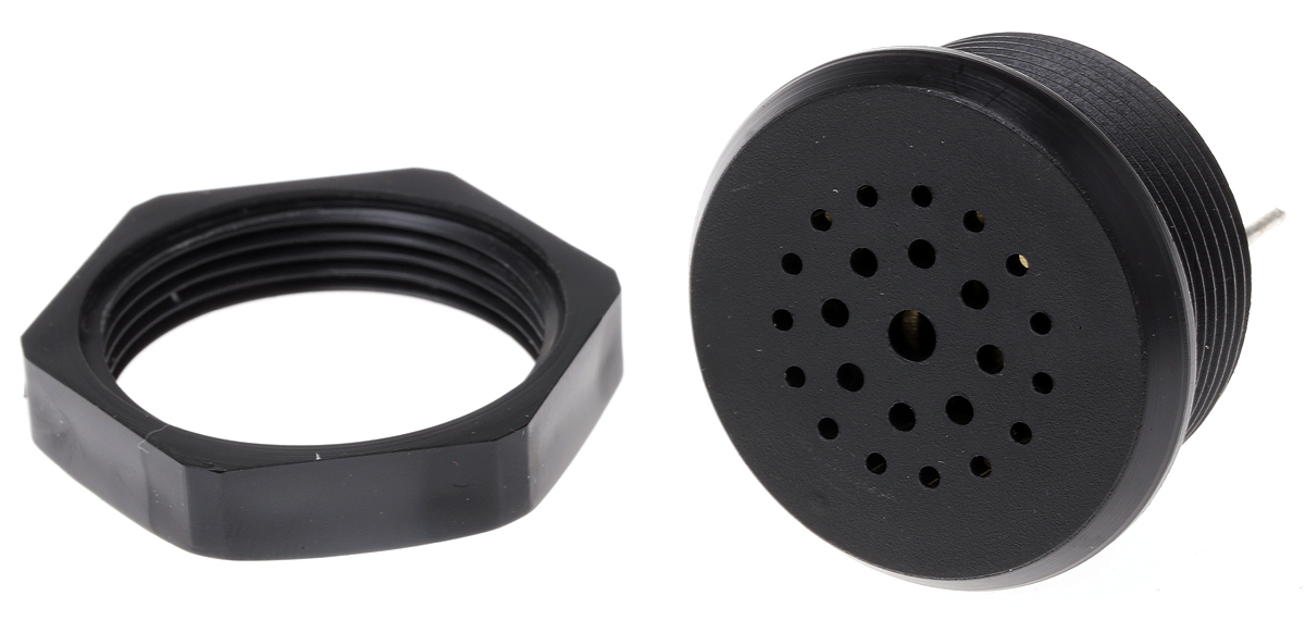This is 94dB Panel Mount Continuous Internal Piezo Buzzer 36.5 x 19mm 3.5V dc Min 9V dc Max manufactured by Sonitron. The manufacturer part number is SP27 GREY. It has a minimum 3.5v dc supply voltage . Its diameter is 36.5mm. The given dimensions of the product include 36.5 x 19mm. The product is available in panel mount configuration. It has a minimum 2975hz frequency . It features 12ma supply current. The product features a internal drive. Whereas, the minimum operating temperature of the product is -40°c. In addition, the height is 19mm. It has a/an continuous type tone . It features 4.025khz of maximum frequency. The product requires a maximum 9v dc supply voltage . Its sound level is about 94db . It has a maximum operating temperature of +85°c.