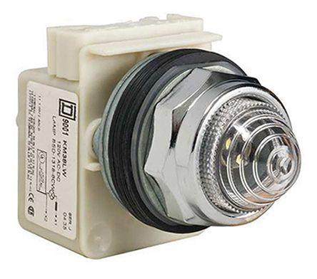This is Clear LED Pilot Light 30mm Cutout 120 V manufactured by Schneider Electric. The manufacturer part number is 9001KP38LWC9. The product is available in panel mount configuration. Moreover, the product has a nominal 120 v voltage rating. Its pilot light is of clear colour . The terminal is a screw type. Whereas its cut-out diameter is 30mm. It is a type of led lamp.