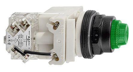 This is Green LED Indicator 30mm Cutout IP66 120 V ac/dc 550 mA manufactured by Square D. The manufacturer part number is 9001SKT38LGG31. The product has a current rating of 550 ma. The product is available in panel mount configuration. It is IP rated with ip66. Its pilot light is of green colour . Moreover, the product has a nominal 120 v ac/dc voltage rating. Whereas its cut-out diameter is 30mm. It is a type of led lamp. The terminal is a screw type.