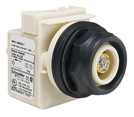 This is Yellow LED Indicator 30mm Cutout 120 V manufactured by Square D. The manufacturer part number is 9001SKP38LY. The product is available in panel mount configuration. Moreover, the product has a nominal 120 v voltage rating. Its pilot light is of yellow colour . Whereas its cut-out diameter is 30mm. It is a type of led lamp. The terminal is a screw type.
